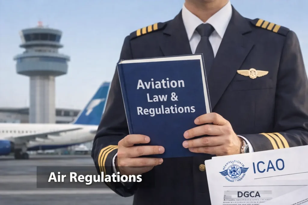 Air Regulations focus on the legal and procedural framework of aviation. It includes ICAO rules, DGCA CARs, rules of the air, airspace classification, licensing requirements, flight duty time limitations, operational procedures, and aviation safety regulations. This subject ensures a pilot operates legally and safely